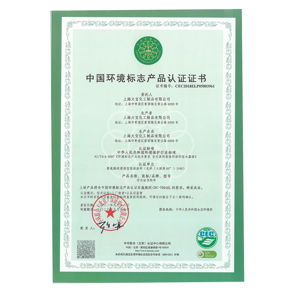 中國環(huán)境標志產(chǎn)品認證證書(上海大寶)
