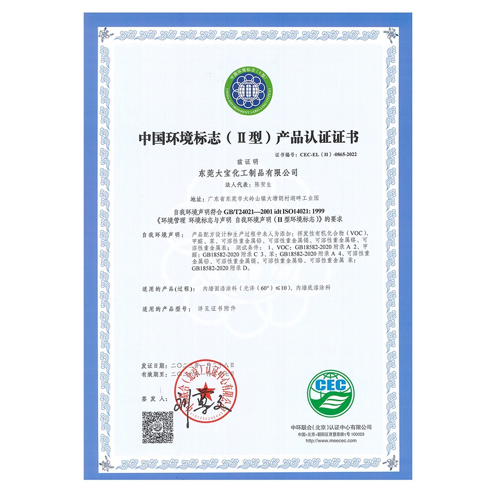 中國環(huán)境標志產(chǎn)品認證證書(乳膠漆)