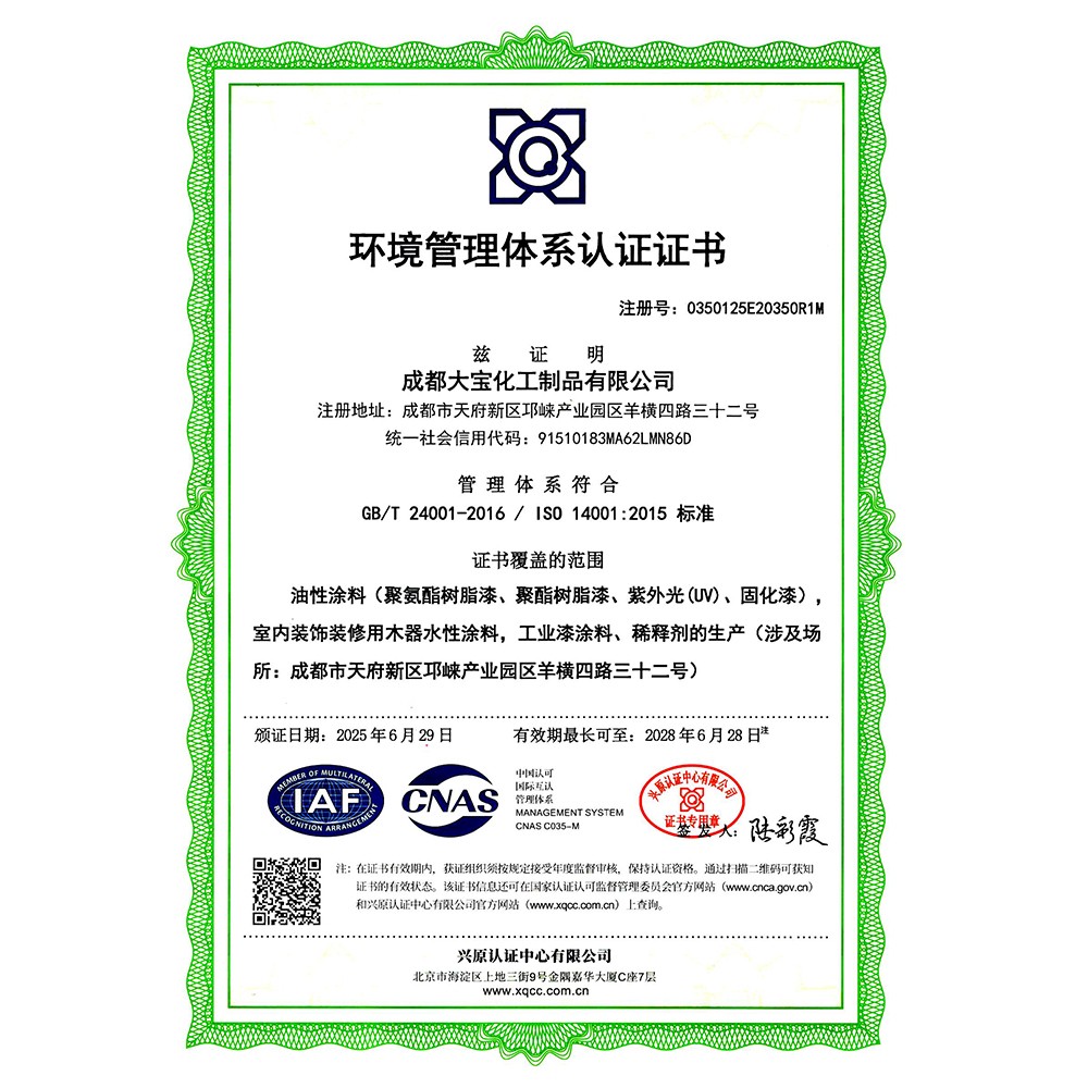 中國環(huán)境標志產(chǎn)品認證證書(水性木器漆)