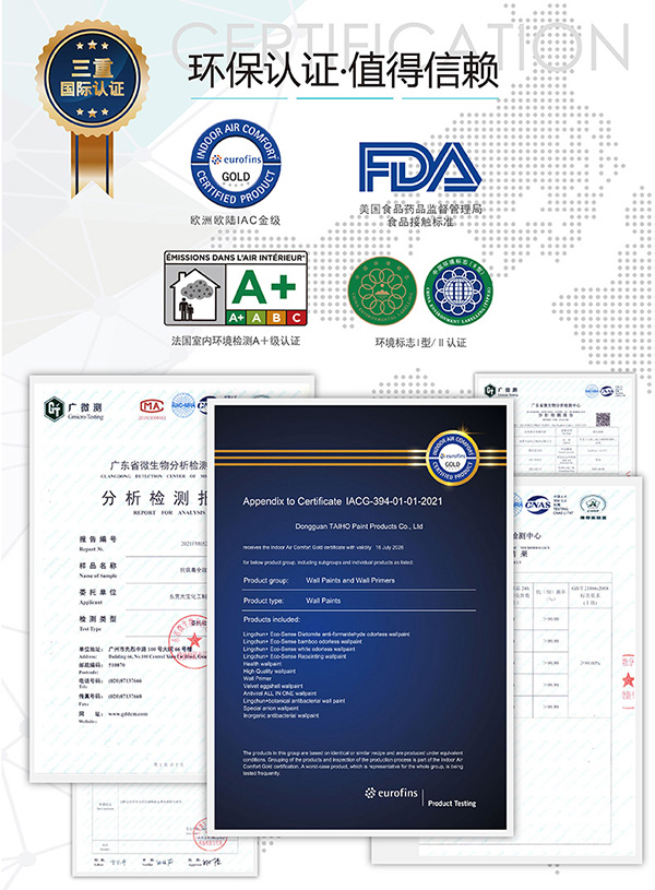 荷蘭高樂伯涂料秉承歐洲企業“專業、環保”的理念,產品獲得歐陸IAC-Gold檢測標準、法國室內空氣排放最高A+標準及中國環境標志認證。