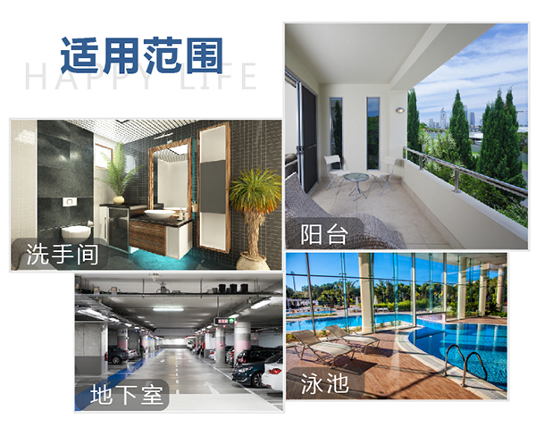 3.施工后保持通風,便于防水層干固;在潮濕環境中,可能會產生泛白和返堿現象。