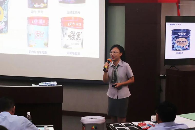 夏秀麗老師細(xì)致講解大寶漆與荷蘭強(qiáng)強(qiáng)聯(lián)手的高樂伯涂料品牌之產(chǎn)品特性及市場(chǎng)競(jìng)爭(zhēng)優(yōu)勢(shì),分享如何通過團(tuán)隊(duì)進(jìn)行大規(guī)模促銷,提高產(chǎn)品銷量和新品上市,刺激渠道的活躍性,更進(jìn)一步提高運(yùn)作效率和品牌形象。