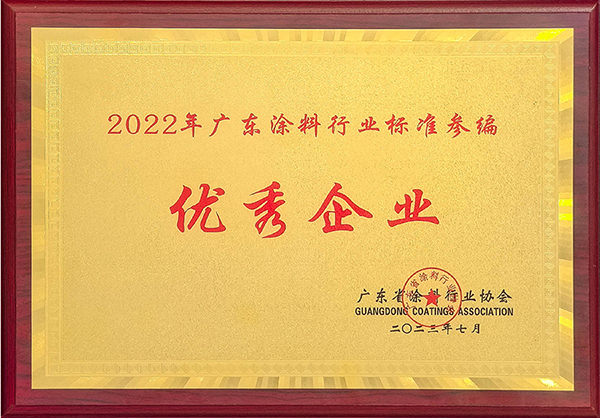 東莞大寶化工制品有限公司憑借過去一年積極響應(yīng)協(xié)會指引,參與多項行業(yè)標(biāo)準(zhǔn)制定,榮獲“2022年廣東涂料行業(yè)標(biāo)準(zhǔn)參編優(yōu)秀企業(yè)”稱號。