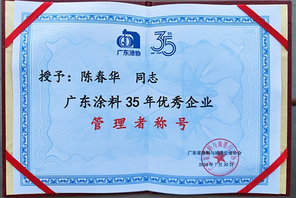 東莞大寶化工 陳春華總經理獲廣東涂料與油墨行業35年優秀企業管理者殊榮