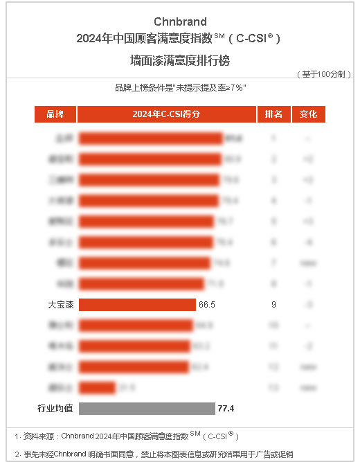 大寶漆再度上榜“墻面漆滿意度排行榜”、“木器漆滿意度排行榜”、“藝術(shù)漆滿意度排行榜”三項榜單,持續(xù)穩(wěn)居行業(yè)顧客滿意度品牌前列,這一非凡成就不僅深刻體現(xiàn)了廣大消費(fèi)者對大寶漆品牌的高度信賴與認(rèn)可,更彰顯了其在市場中的堅實品牌韌性與卓越品質(zhì)。