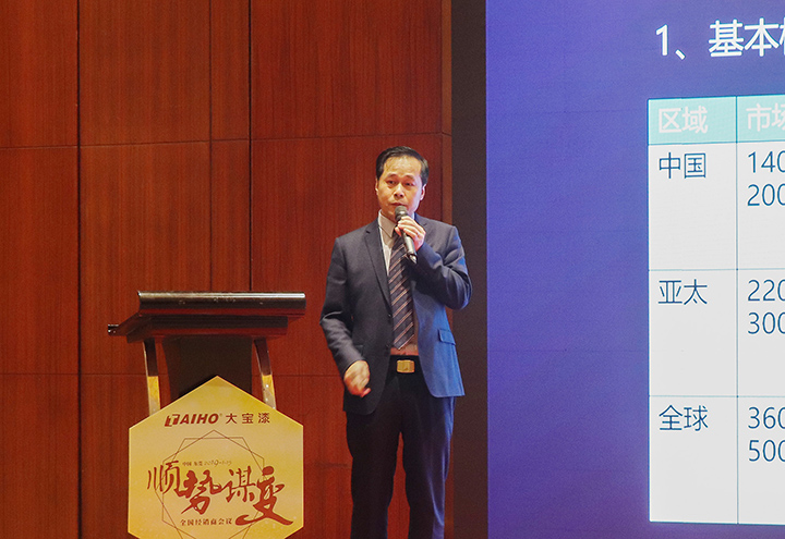 隨后,家裝事業(yè)部經(jīng)理黃文敏作家裝漆總結(jié)報告。他通過成功經(jīng)營案例、大寶漆2019年市場布局為經(jīng)銷商加油打氣。他指出,公司將通過內(nèi)部整合、外部資源運用,和經(jīng)銷商協(xié)同謀贏,再創(chuàng)佳績。