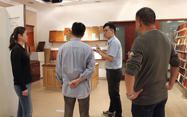 到訪領導一行還參觀了東莞大寶化工現代化的廠房設備、智能化涂裝線、一流的中央實驗室和展示家具漆產品完美施工效果的色板中心等地,增進了彼此的了解和進一步合作的信心。針對“油改水”問題,工作人員向參訪人員介紹了大寶漆水性漆的工藝和質量控制情況,詳細回答了馬總、李總一行對智能涂裝線的提問。考察人員對大寶漆先進的生產管理和環保理念給予了高度評價。