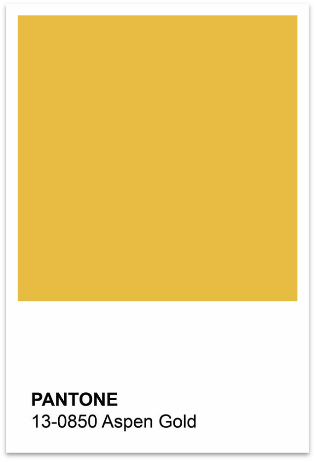白楊金(PANTONE 13-0850)激起歡樂與興高采烈的感覺,讓我們的日子生輝。白楊金同樣是一抹熱情的色彩,明艷開朗的明黃色調就如春日的暖陽般,給人帶來積極感受的色彩,是所有色相中最能發光的顏色。一出現就極為惹眼,將這種高飽和度的色彩應用在建筑或是家居設計中,給人輕快、透明、輝煌和充滿希望的感覺。在室內設計中,白楊金不需要被大面積的鋪陳使用,就能起到點綴空間的作用,使整體的設計色調更加明亮。