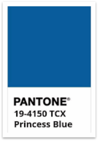 公主藍(PANTONE 19-4150)一種莊嚴的皇家藍色色調,閃閃發光而莊嚴神聖,她是一種能提升整個人精氣神的一種神奇的顏色,它給人一種莊嚴的感覺,不像淺藍色那樣青春活力,也不像牛仔色那個隨意散漫,公主藍比起深海藍淺和亮,比較像是藍寶石一般的湛藍,因此看起來會帶點高貴沉穩大氣的感覺。