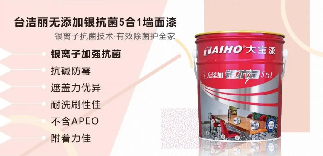 抗菌5合1功能,呵護始終如一!臺潔麗無添加銀抗菌5合1墻面漆,采用優質原材料制成,創新導入Ag+銀離子抗菌技術,使墻面抗菌效果更加提升,并取得歐洲歐陸IAC金級、法國室內空氣環境檢測A+級,美國FDA三重國際認證。此外,本產品在配方及生產過程中無人為添加苯等有害物質,超低VOC,為您打造自然清新的家居環境。