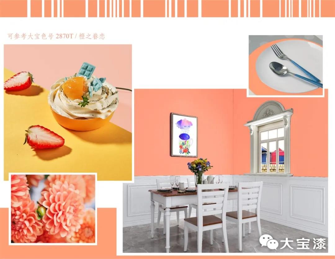 將蜜瓜橙帶進家里,無論是墻面、家具,還是軟裝配飾,都散發出滿滿的青春活力,并且還帶有甜蜜的味道,能讓人擁有繽紛燦爛的愉悅心情,絕對是夏天甜蜜美好的色彩。