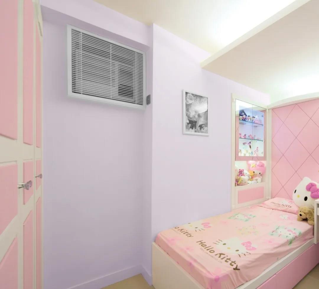 兒童房以淺紫、淺粉色為基調(diào),可以營造出甜美的空間效果。淡紫色背景墻很好的消除了空間的單調(diào)感,十分溫馨。據(jù)稱,在色調(diào)溫和的環(huán)境中成長的孩子,性格也會變得更溫和。