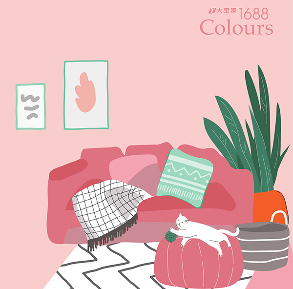 正值換季季節(jié),不妨嘗試看看以大寶設(shè)彩家推薦2023年度關(guān)鍵色/R7020-85P桃紅為主色調(diào)的系列搭配,將這些繽紛顏色運用于居家環(huán)境中吧!