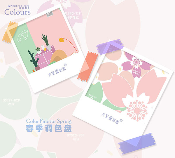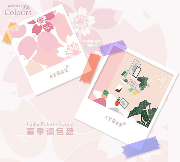 大寶設(shè)彩家匯整了粉、青與橙色配色小卡,借一縷春風(fēng),刷出滿室春意盎然,為家換上春日半暖時光!