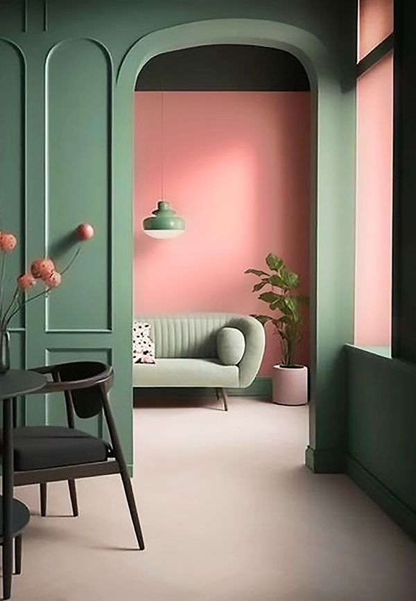 在室內空間中刷上同類色的薄荷色系為居室注入一股淺淡的溫柔氣息并與木色搭配,WOW!氧氣感十足,國潮復古風,平和與時尚兼具,同時為空間增添自然原生態的氛圍。
