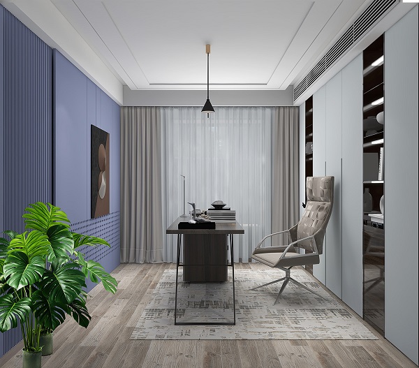 書桌和櫥柜可以選用深淺不同的灰白色系,