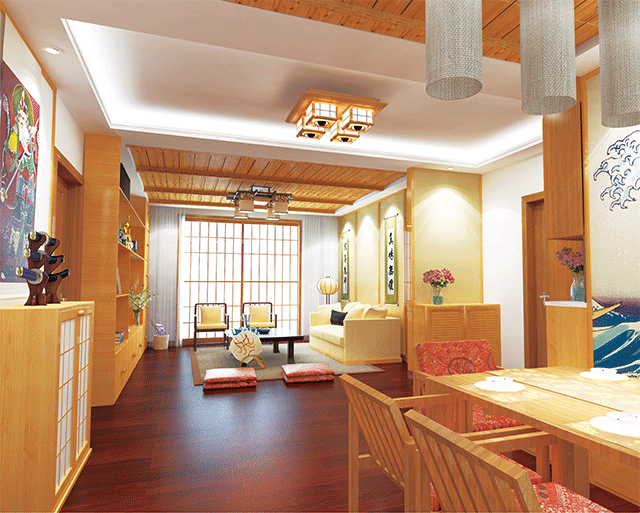日式風格又稱和風、和氏,它繼承了中國古代佛教寺廟、傳統神社以及中國唐代建筑的特點。現代日式設計風格直接受日本和氏建筑影響,講究空間的流動與分隔,其室內設計色彩多偏重于原木色以及竹、藤、麻等天然材料顏色,以營造靜謐、禪意的居室環境。